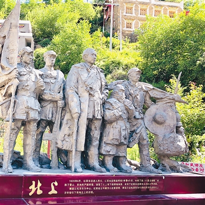 很快,中共中央離開兩河口北上,翻越第二座大雪山夢筆山,到了4個土司管轄的“四土”地區(今馬爾康市)。7月上旬,中共中央在馬爾康卓克基土司官寨休整一周,繼續北上。在卓克基紅軍長征紀念館門前,有座名為“北上”的雕塑群像――以毛澤東為中心,展示了紅軍戰士和藏族小紅軍舉旗挑擔跟隨領袖向北進發、爬雪山過草地的場景。這一群雕,與兩河口會議紀念館里的“紅軍北上”雕塑遙相呼應。毛澤東曾多次講到一個細節:紅軍過草地時,伙夫同志一起床,不問今天有沒有米煮飯,而是先問向南走還是向北走。