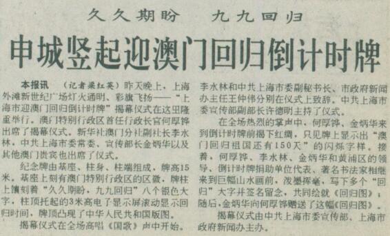 20年前,上海市各界人民正用這些方式,表達對澳門回歸、祖國統一的喜悅。