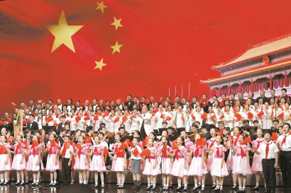 文藝晚會在全場大合唱《歌唱祖國》中落下帷幕。